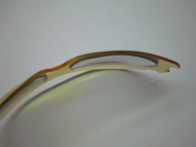凸面がほぼ「面一」になる分、少々裏面に厚みが出ますが、写真の度数(R:S-3.00 C-2.50 AX177° L:S-2.50 C-3.00 AX177°)でこの程度ですからあまり気にならないと思います。